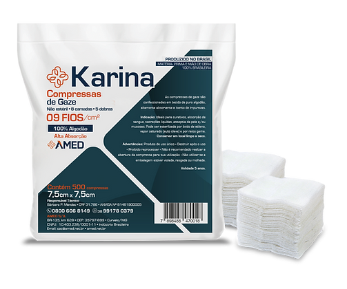 Compressa de Gaze 9 Fios 7,5×7,5 Karina Amed