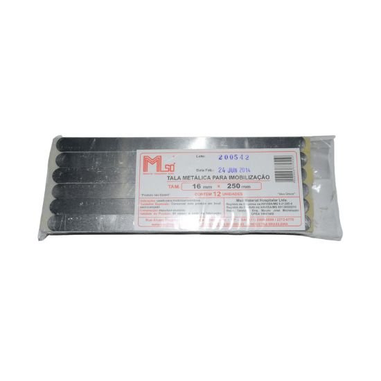 Tala Metálica com Espuma da M-SO é um produto médico-hospitalar indicado para imobilização de menbros em caso de fratura ou entorses com auxílio de esparadrapo e atadura. Para uso geral pediátrico e adulto.